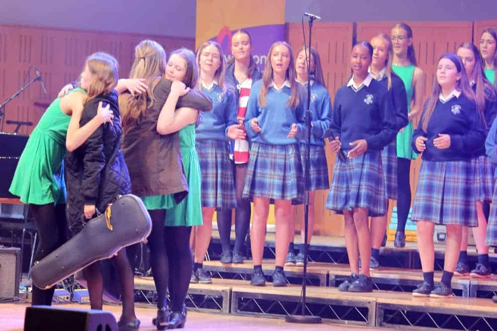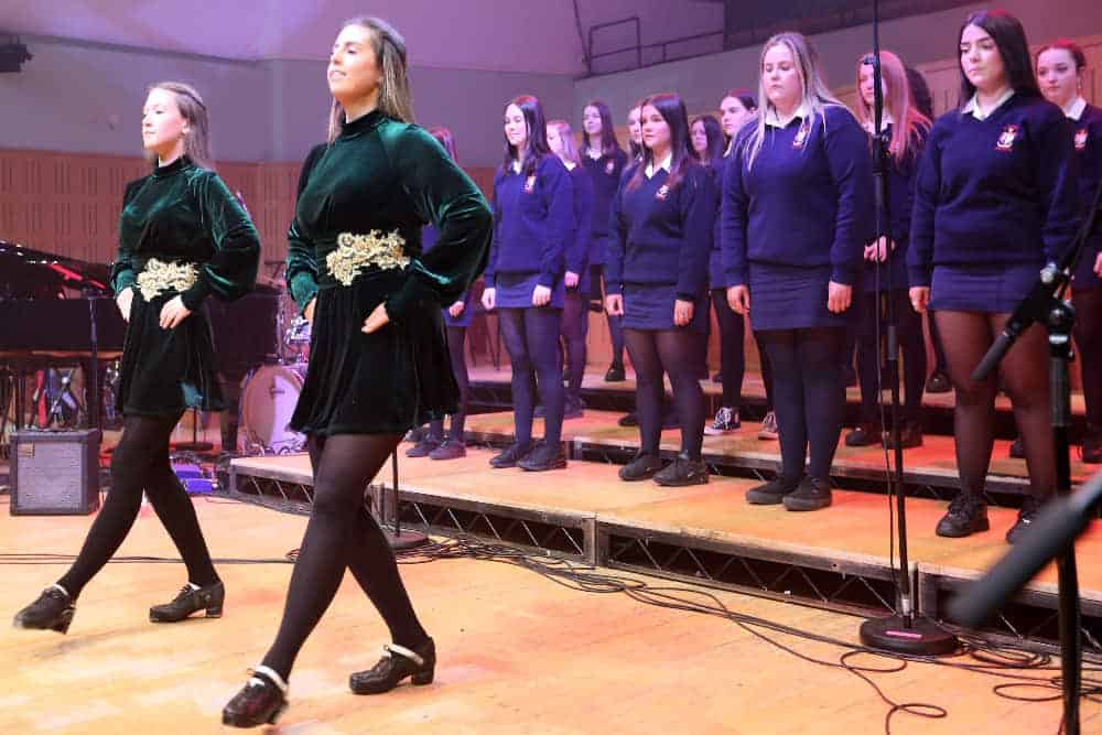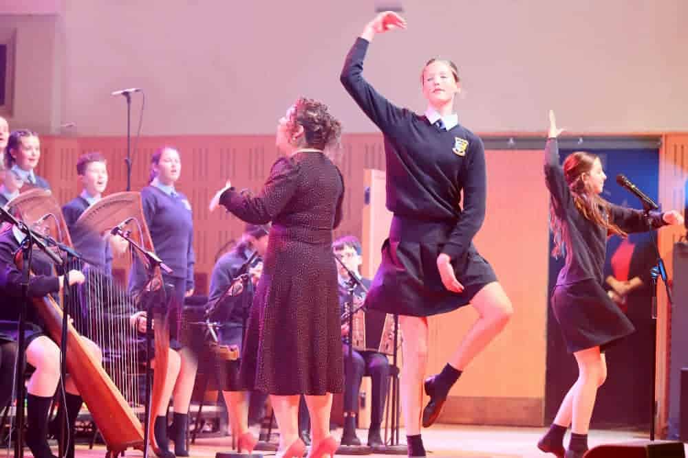 The group’s entry was the result of a collaboration among music students, the school choir and the school traditional music group. When the students were invited to meet at lunchtime to brainstorm ideas, they decided that they could represent the theme in two ways. The first was physical movement, and they explored the power of music to inspire physical expression. They incorporated this in their song choices with a student-choreographed dance. The second way, which resonated strongly with the students, was the ability of music to move someone emotionally. The school had lost a teacher last year, and music played a huge role in helping the entire school community to come to terms with their grief. The music that students performed at mass and services provided a source of comfort and reflection for the school. The song ‘Rise Up’ reflects the power of music to provide us with hope and comfort. On a broader level, students discussed the power of music to move people in these turbulent times of war and conflict around the world, and they felt that the song ‘Zombie’ connected well with the theme. Finally, the instrumentation and arrangement of the performance was very much student-led, and the students even composed a reel based around the chords of ‘Zombie’, which allowed them to incorporate Irish dance. Choreography was realised by the dancers themselves, with group’s drummer coming up with a suitable rhythmic accompaniment.