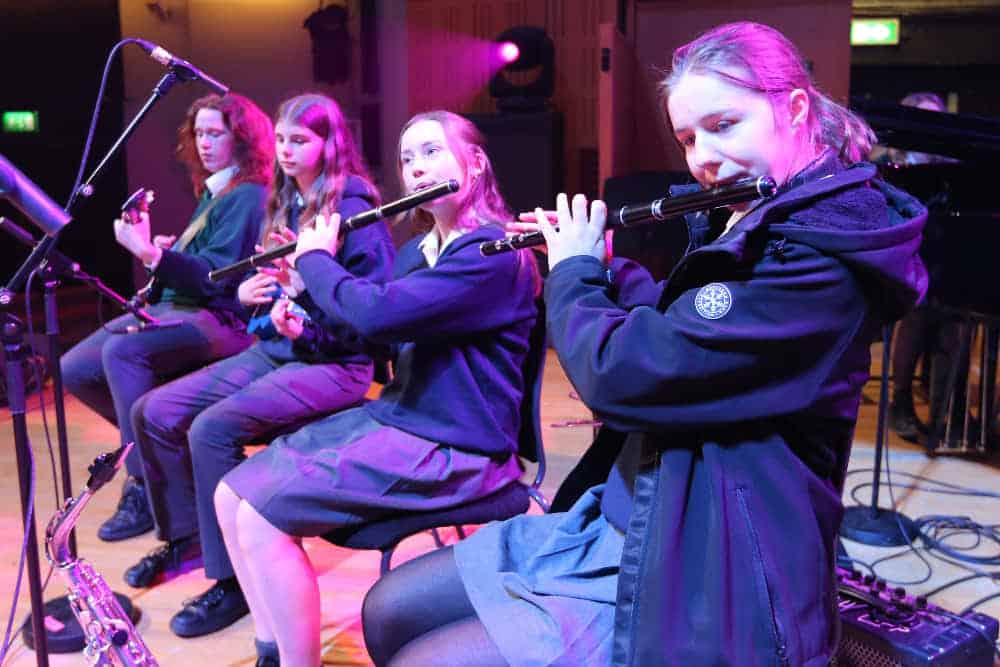A selection of photographs of the six post-primary school music groups, in alphabetical order, rehearsing for their performances in the 2024 Finalists Concert. (All photographs by Eoin O’Mahony.)